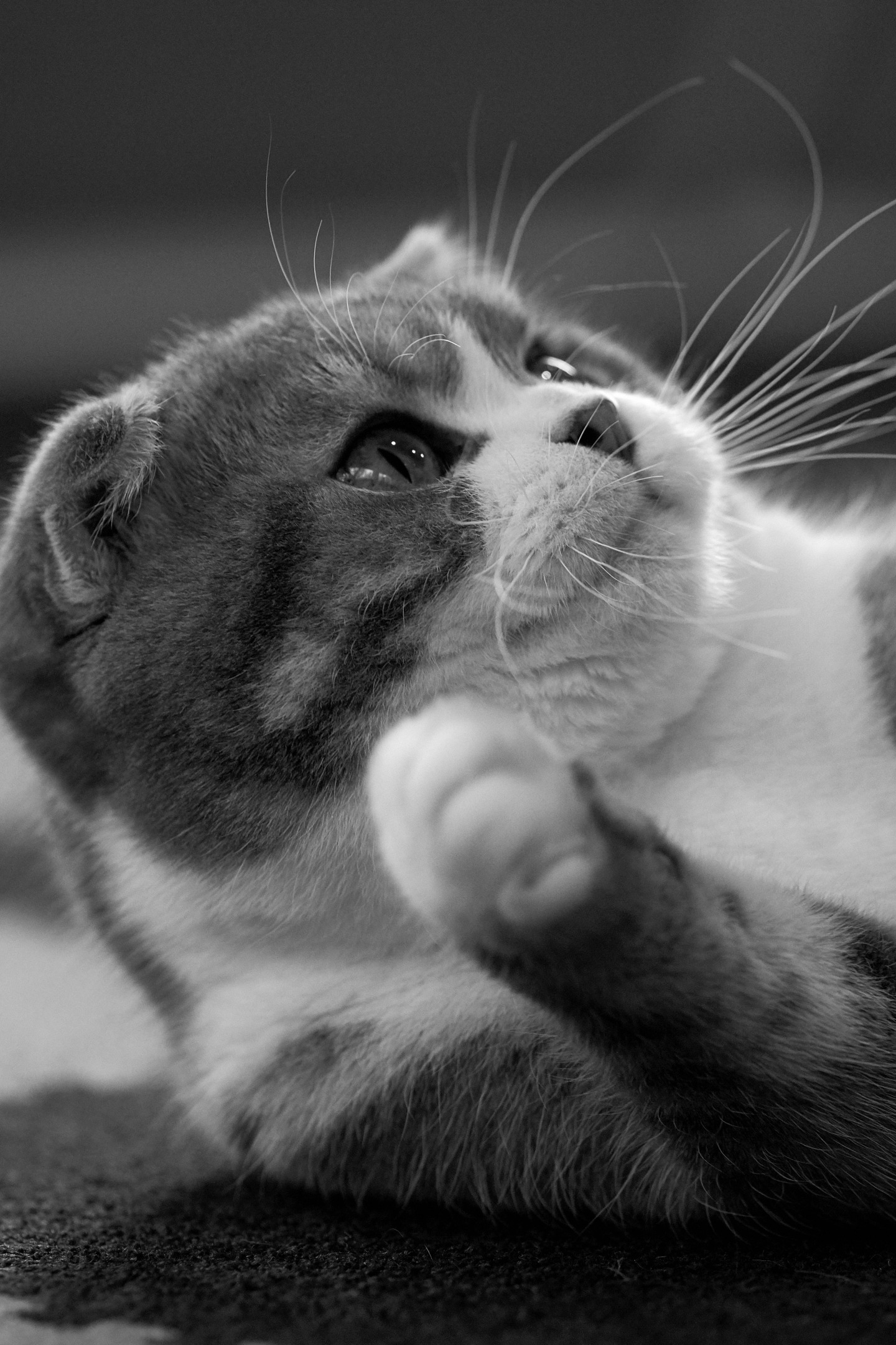 кошка, кот, лапки, черно-белое, монохром, скоттиш-фолд, Шотландская вислоухая кошка