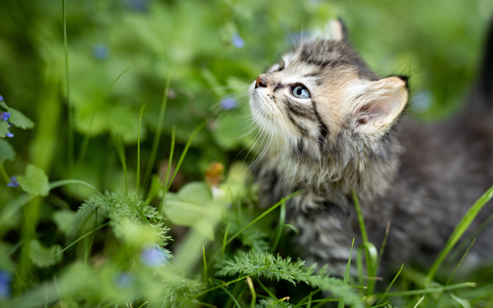 Назад к обои трава, взгляд, малыш, мордочка, котёнок