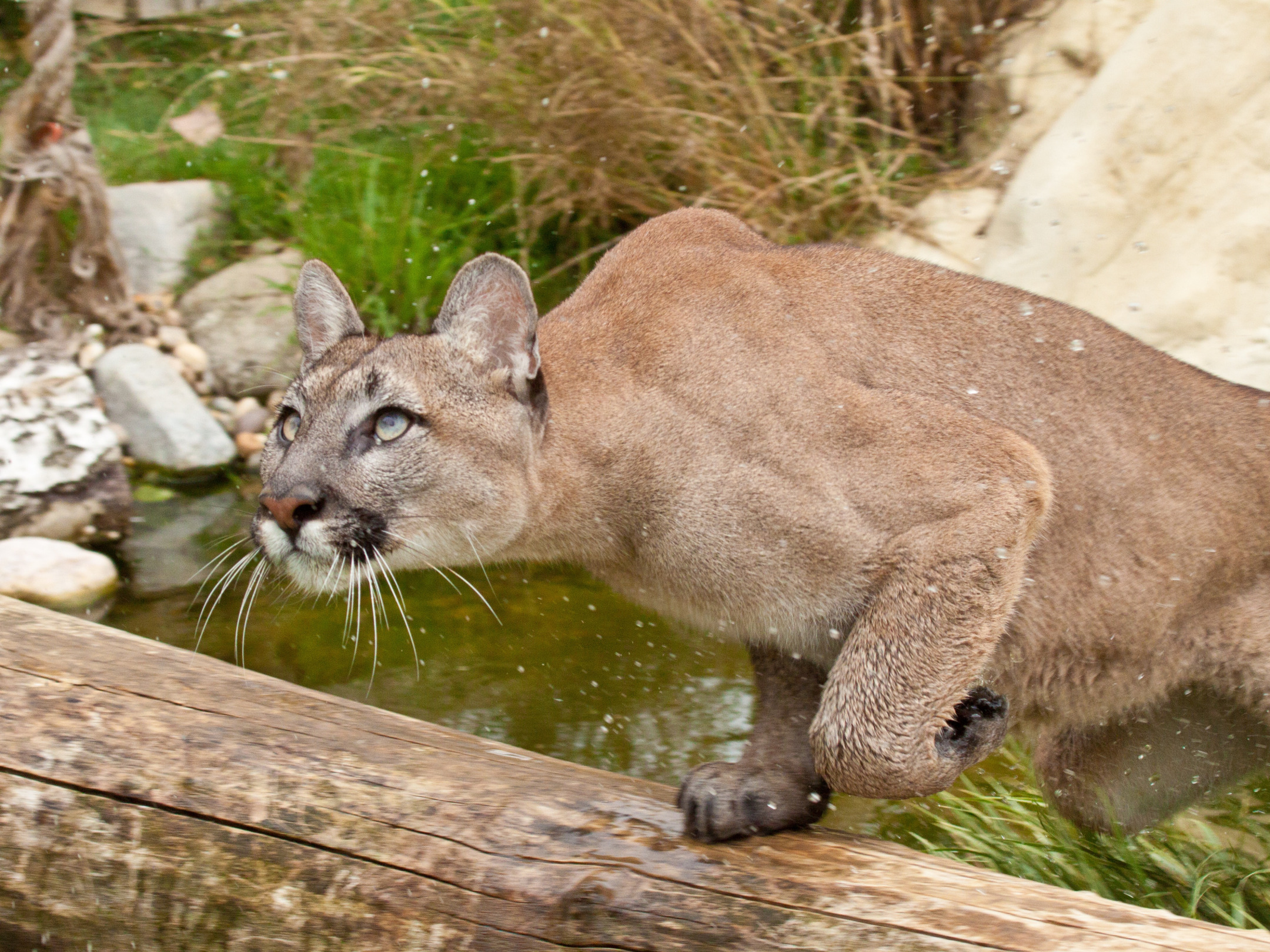 Назад к обои кошка, трава, взгляд, вода, брызги, прыжок, охота, бревно