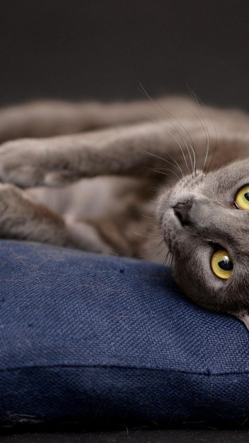 Назад к обои кошка, кот, серый, фон, подушки, лежит, позирует, британский