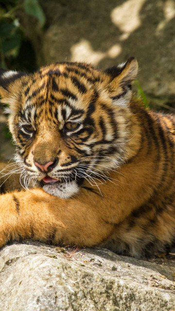 Назад к обои кошка, тигр, камни, отдых, детёныш, котёнок, тигрёнок, суматранский