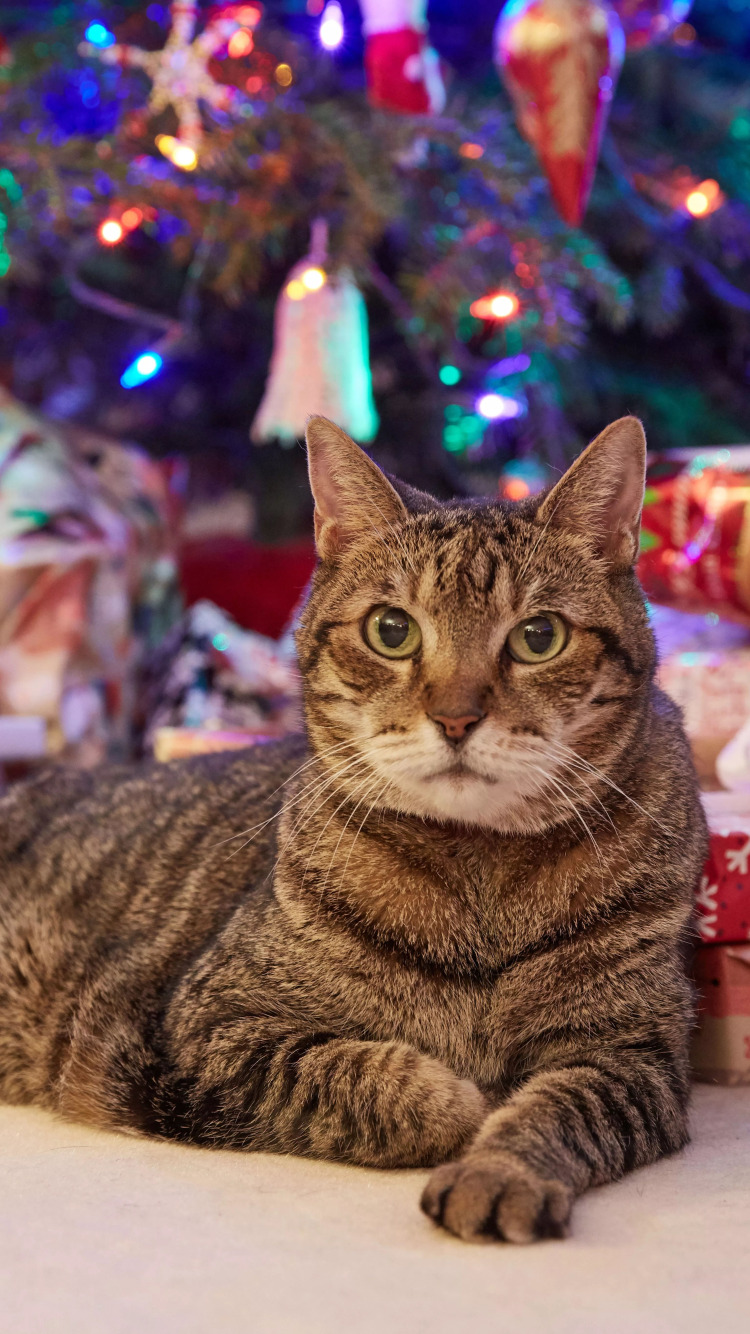 Назад к обои кошка, взгляд, новый год, Рождество, Christmas, cat, pets, домашние животные