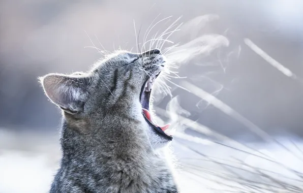 Кошка, усы, морда, пасть, мех, зевает обои на телефон (фото, картинки)