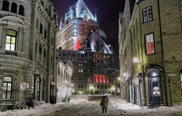 Ночь, огни, дома, канада, квебек, замок фронтенак обои на телефон (фото, картинки)