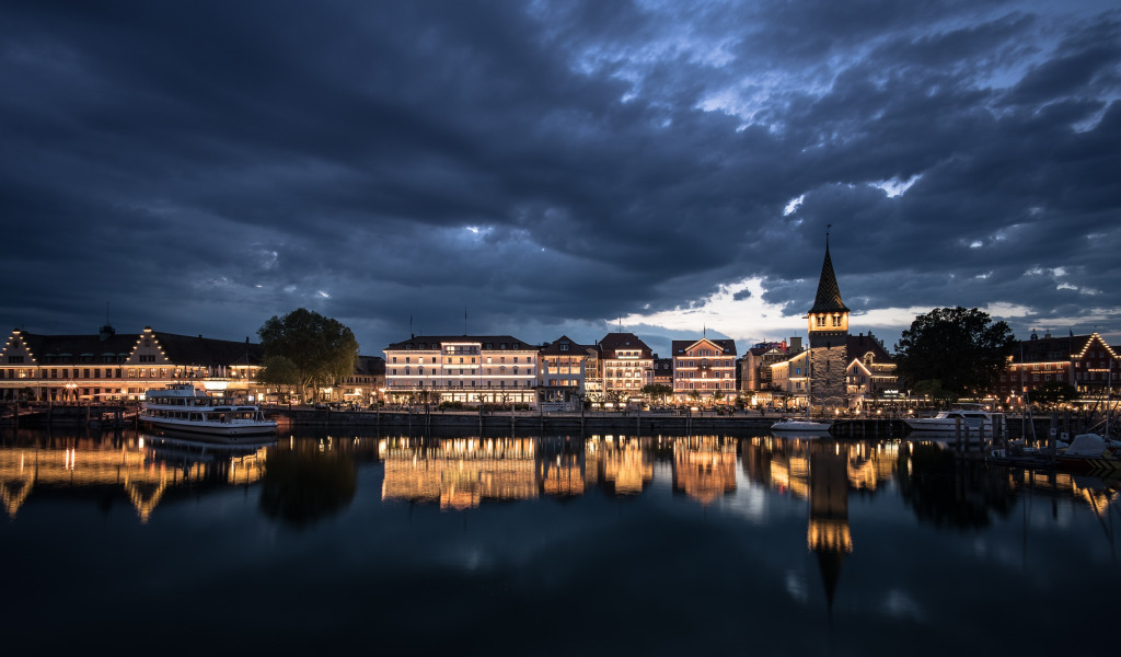 ночь, город, Lindau