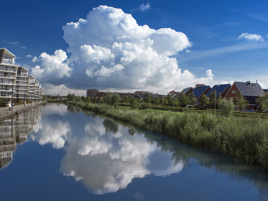 Назад к обои небо, облака, природа, отражение, река, Нидерланды, river, nature