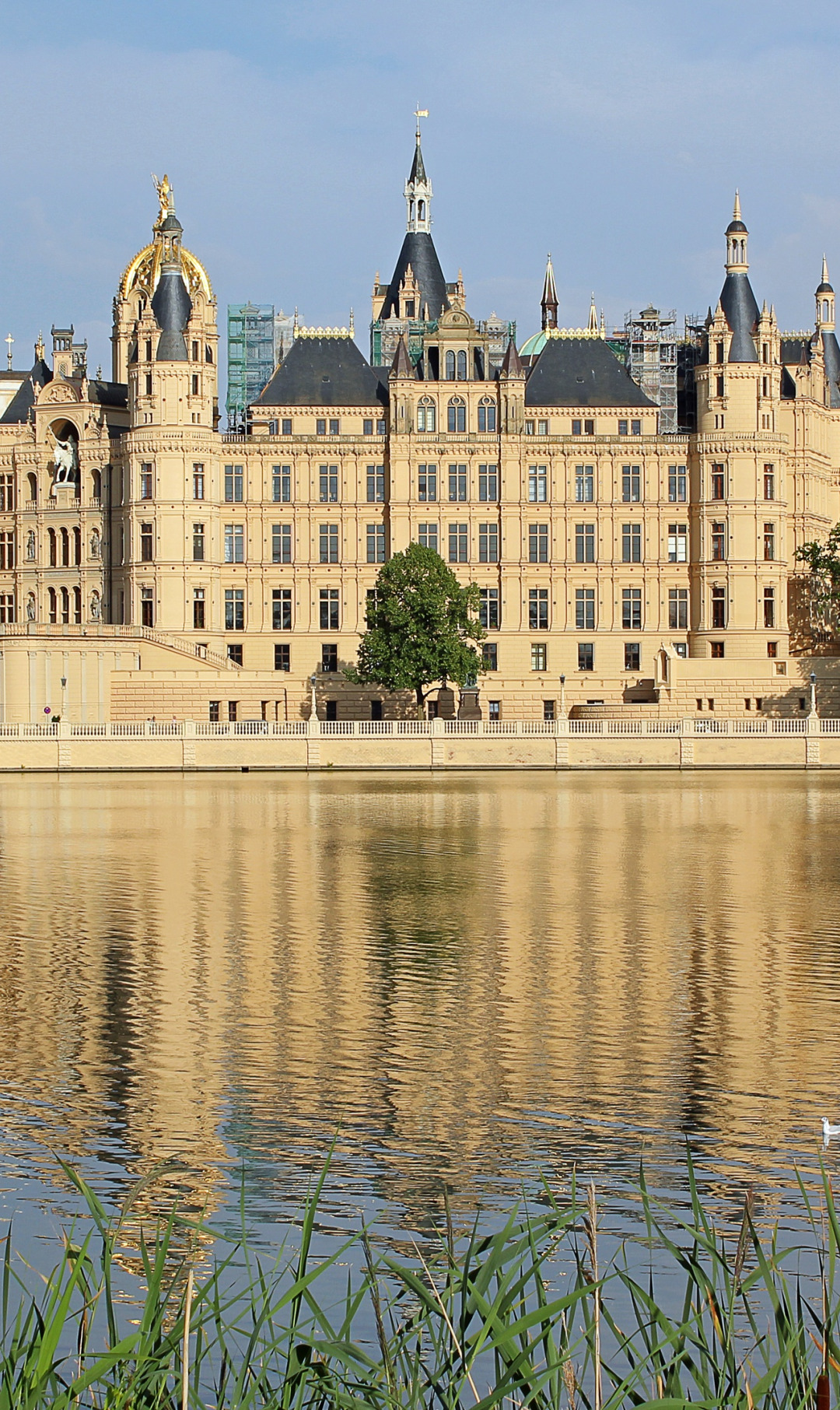 Назад к обои вода, деревья, пруд, отражение, замок, Германия, камыш, Schwerin