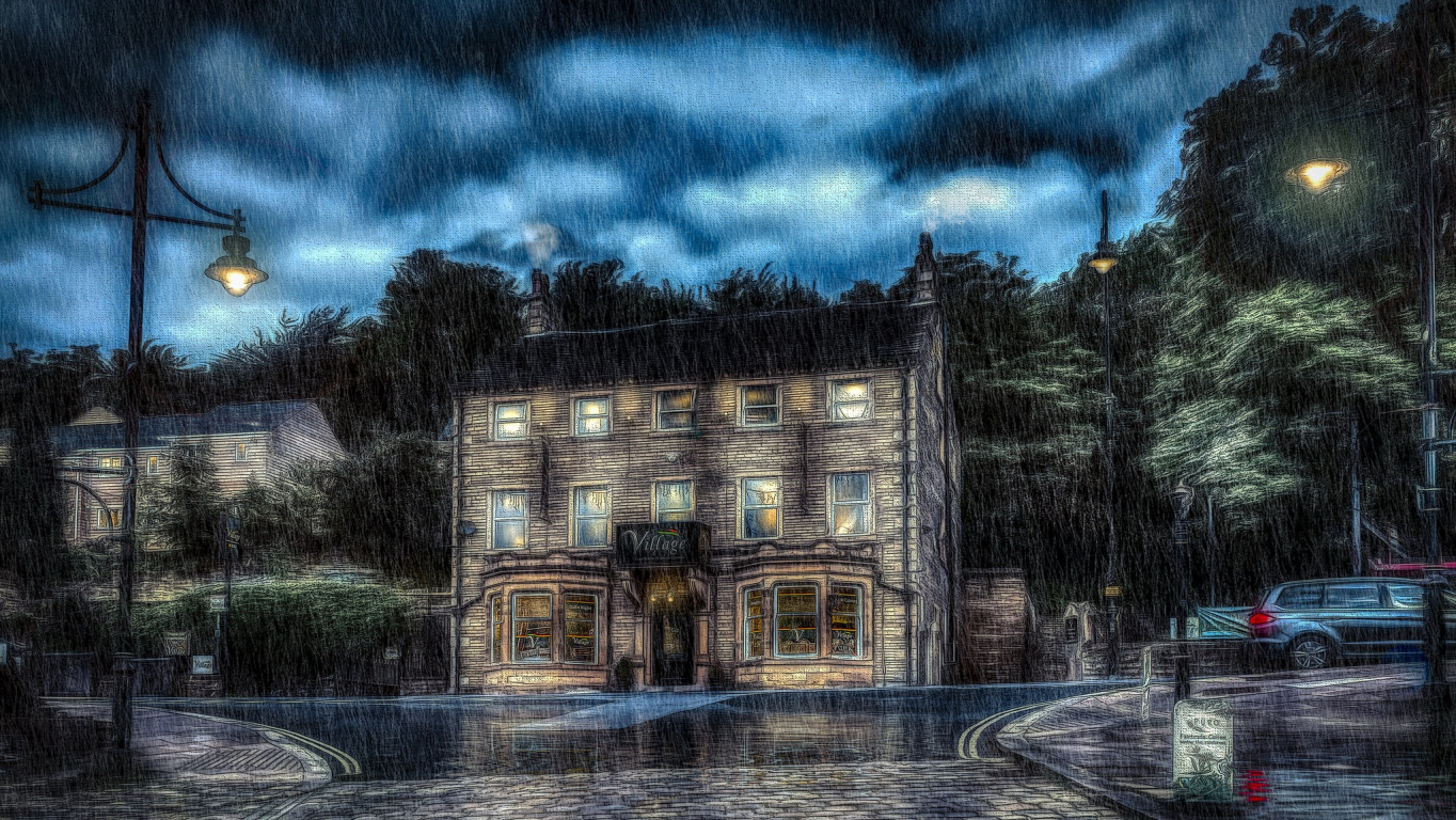 город, дождь, Pub