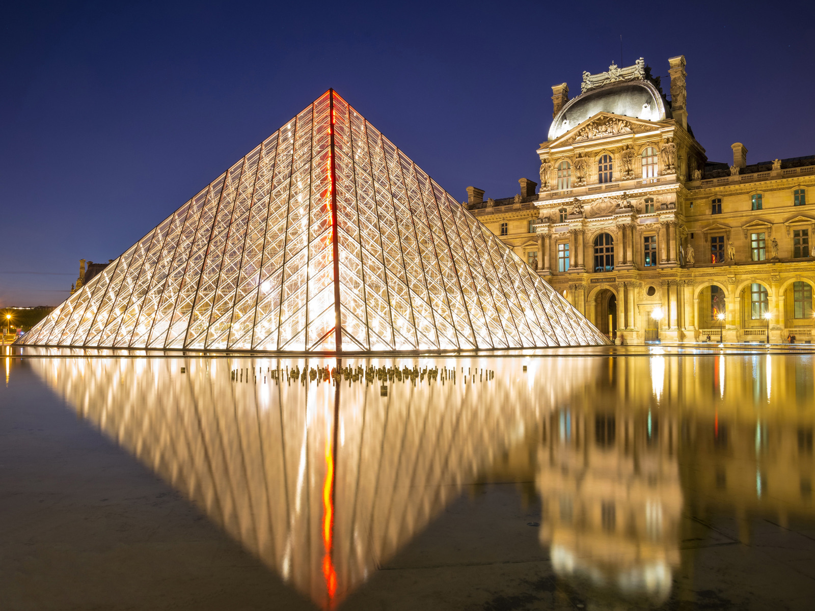 Назад к обои ночь, огни, Франция, Париж, Лувр, площадь, фонари, пирамида
