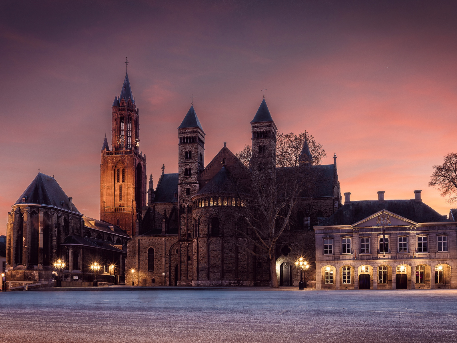 Назад к обои небо, деревья, огни, дома, площадь, фонари, церковь, храм
