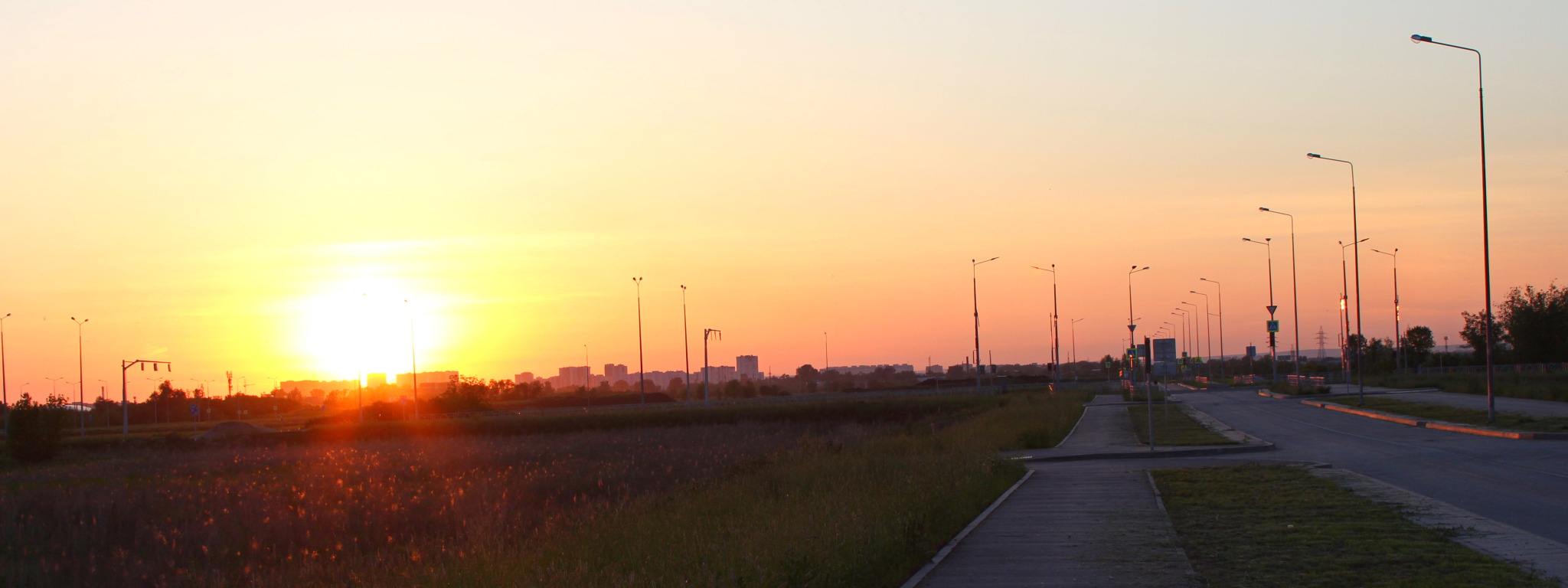 Назад к обои дорога, лето, небо, солнце, закат, здания, дома, вечер