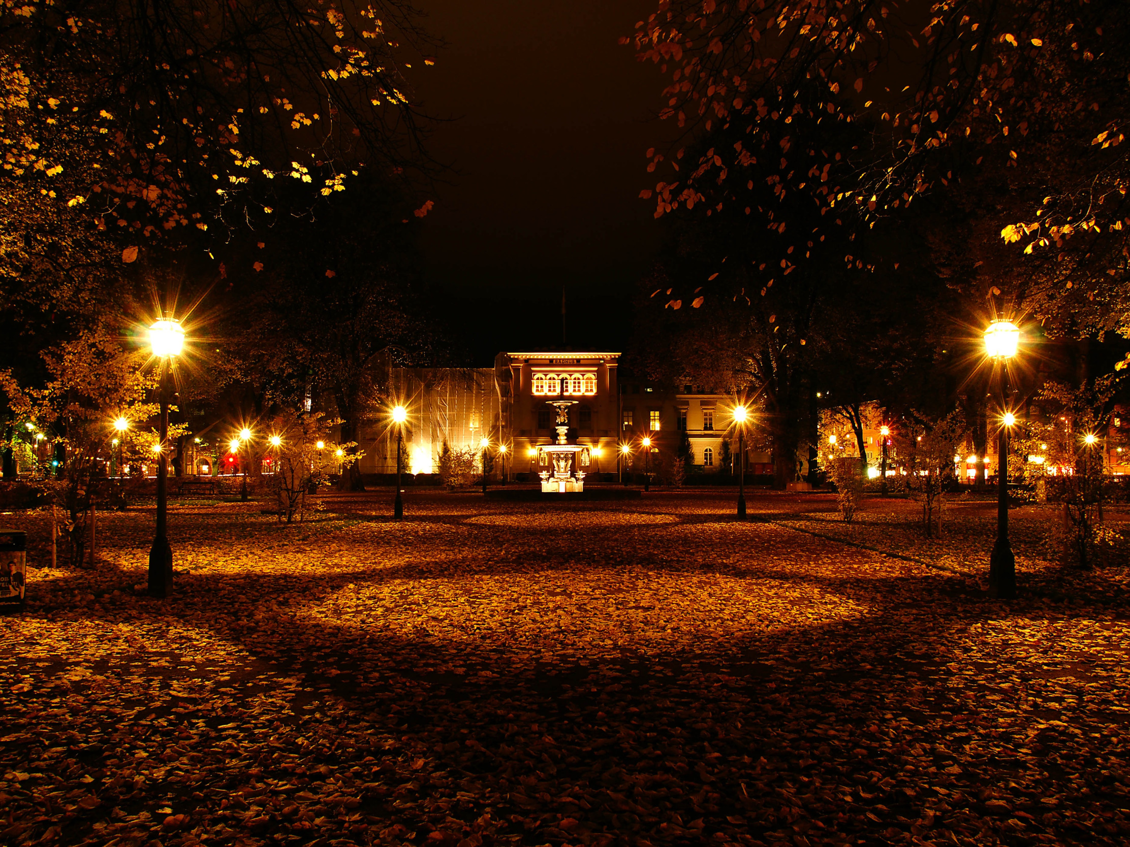 Назад к обои осень, ночь, парк, листва, фонари, Швеция, Sweden, night
