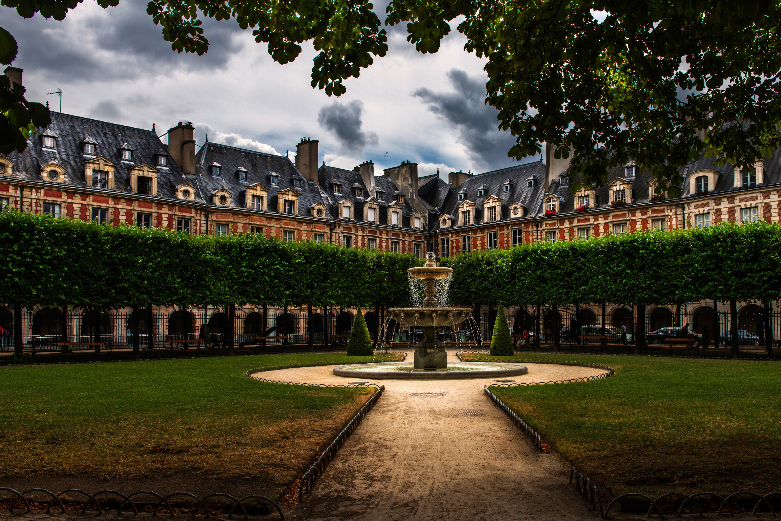 зелень, деревья, парк, газон, Франция, Париж, здания, фонтан