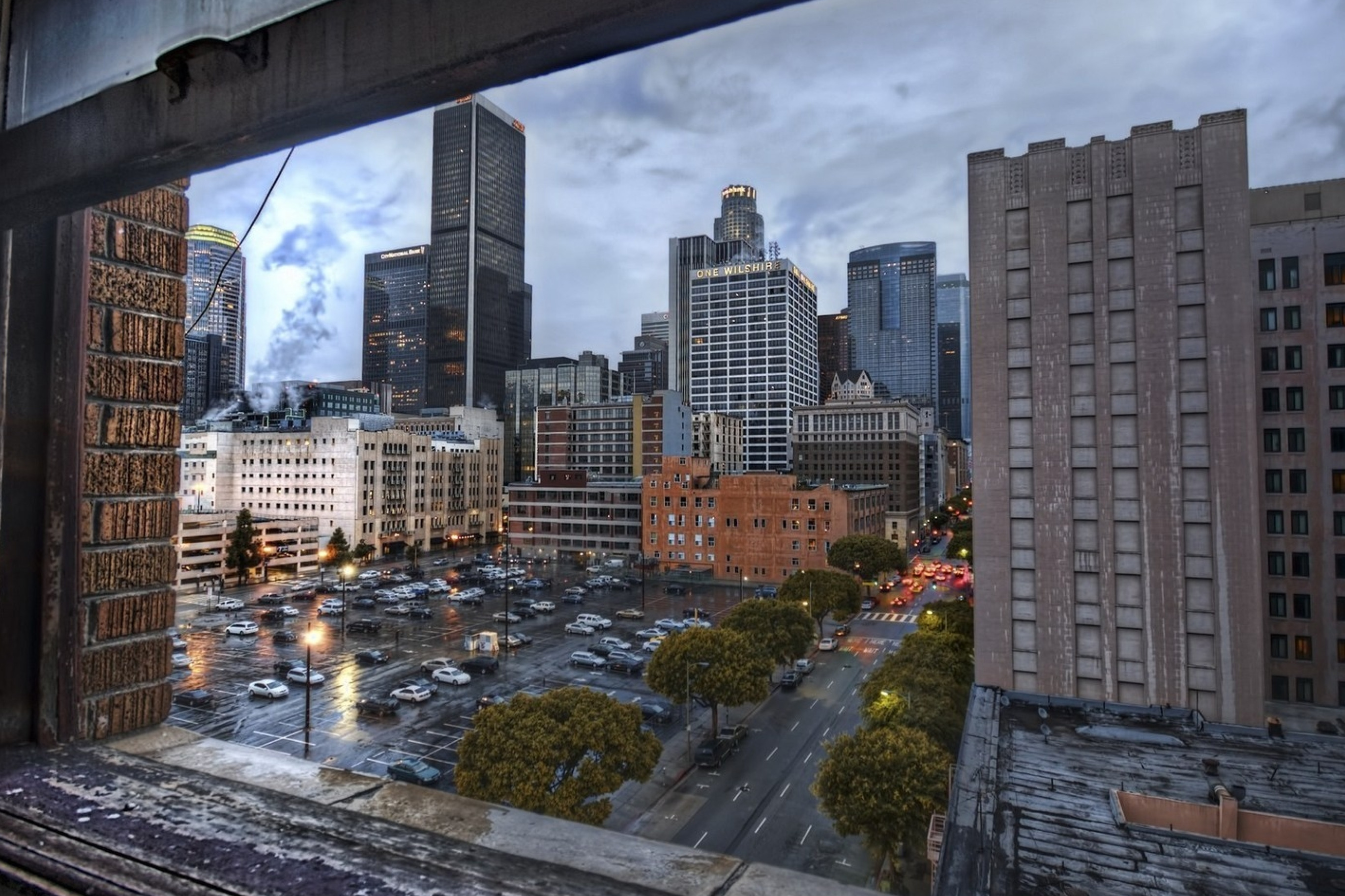 дорога, небо, тучи, город, улица, здания, горизонт, автомобиль