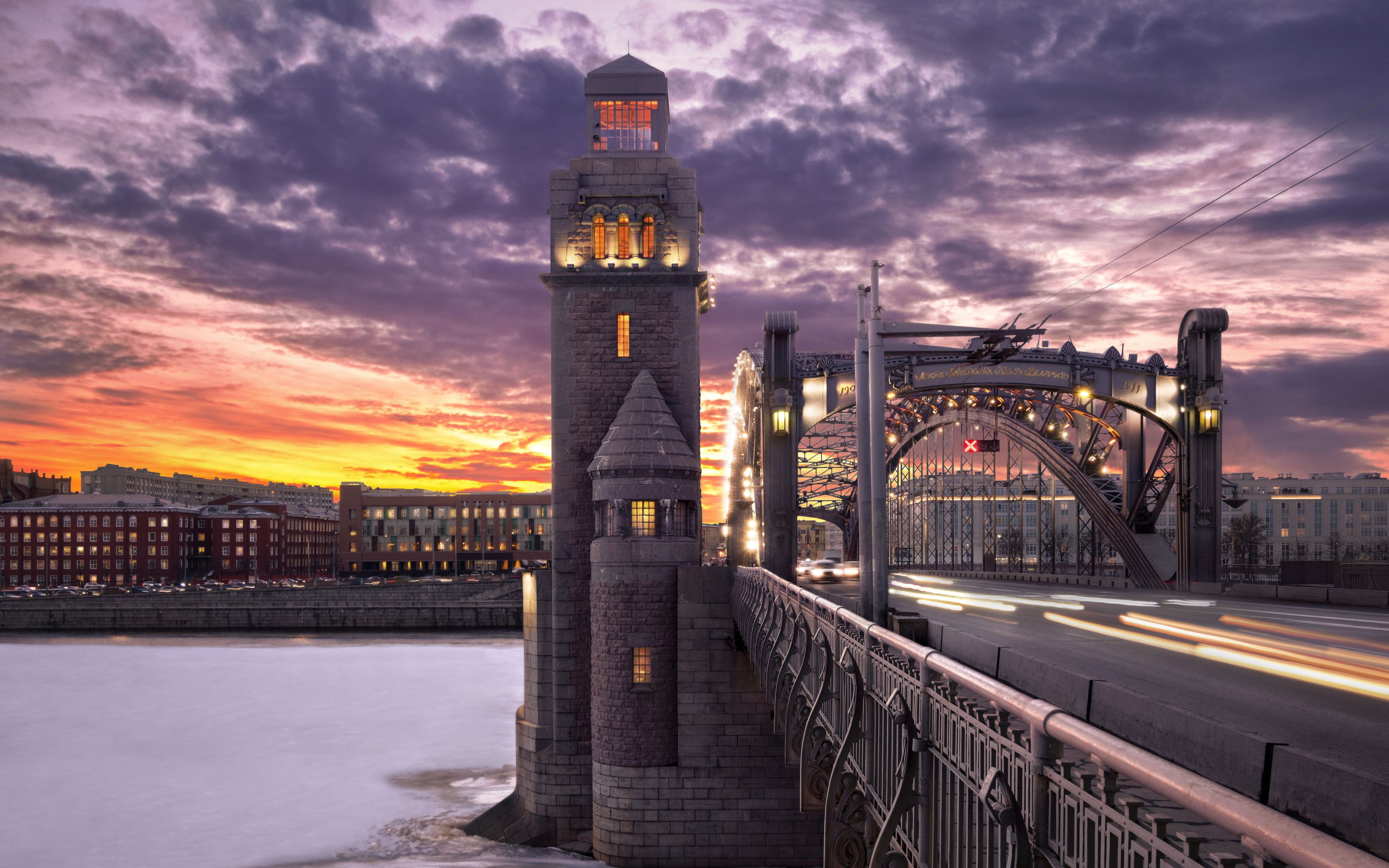 Назад к обои закат, мост, река, башня, Санкт-Петербург, Россия, Река Нева, Большеохтинский мост