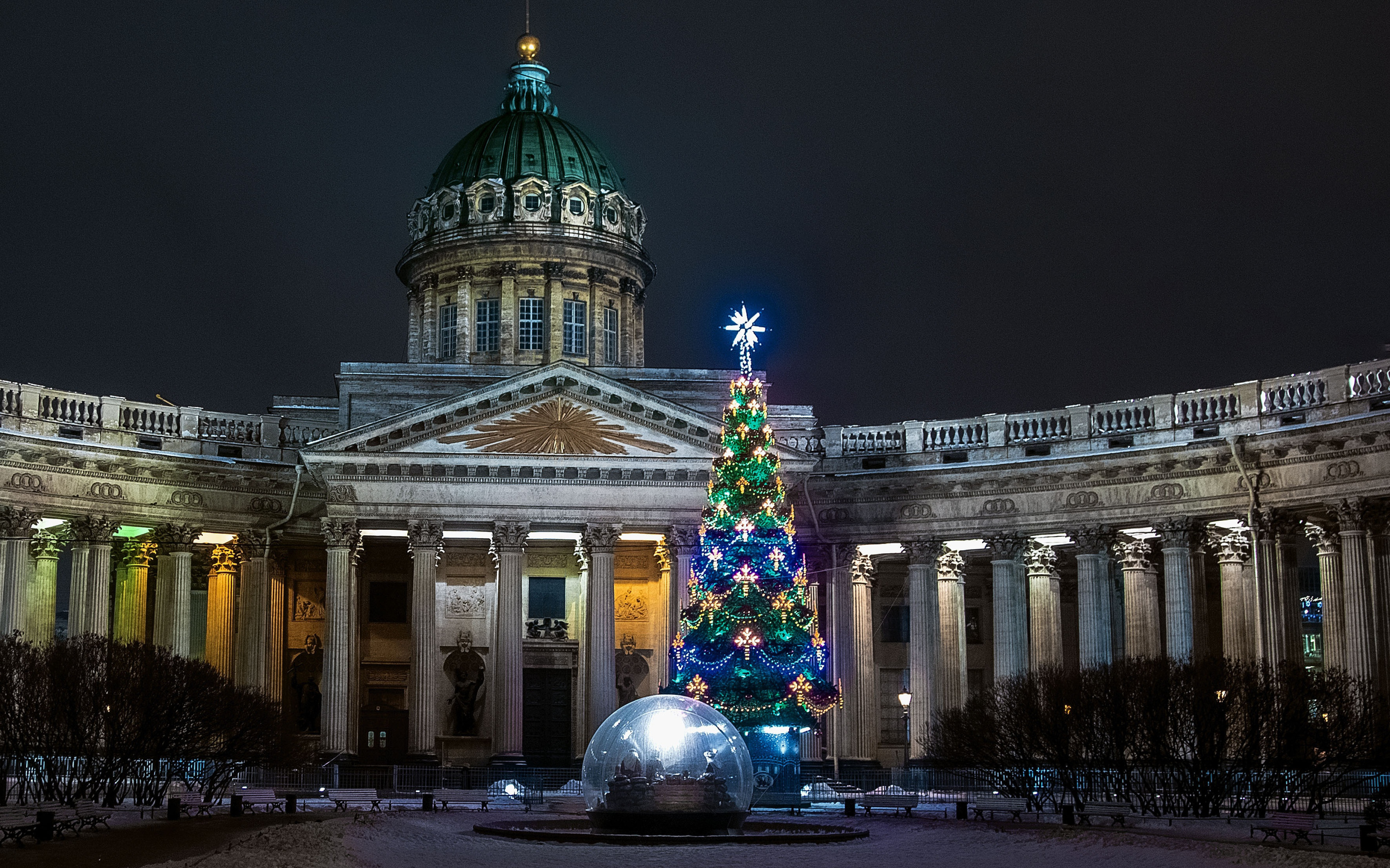 Назад к обои зима, снег, ночь, город, праздник, елка, новый год, Питер