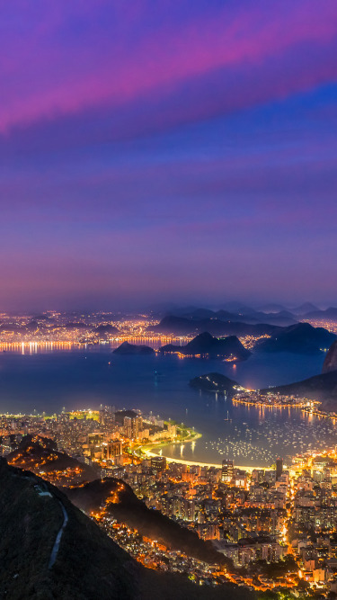 Назад к обои закат, lights, огни, лодка, корабль, залив, Бразилия, sunset