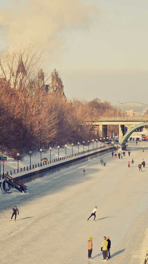 мост, Канада, Оттава, канал Ридо, катание на коньках