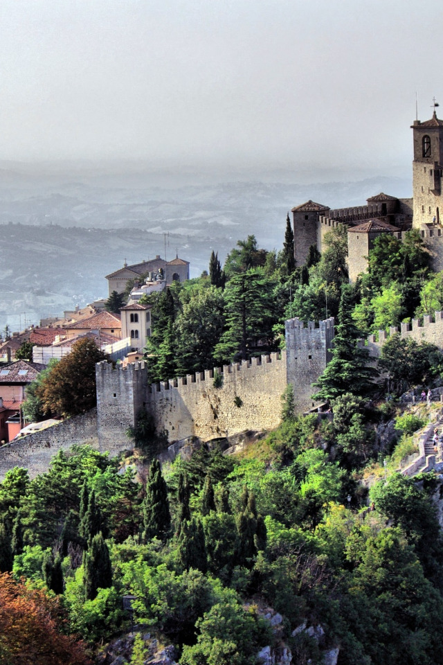 Назад к обои небо, пейзаж, горы, город, замок, скалы, дома, строение