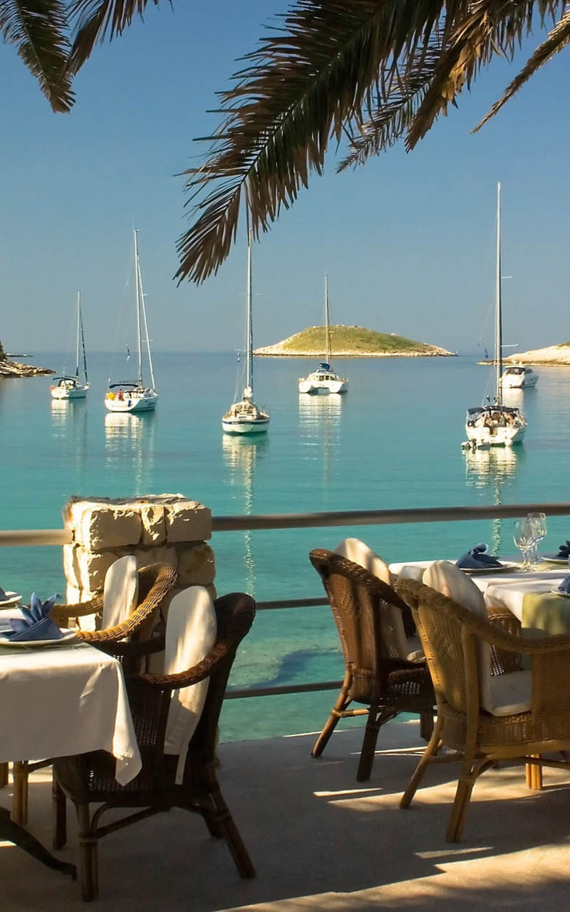 Назад к обои море, бухта, яхта, залив, ресторан, набережная, Хорватия, Адриатика