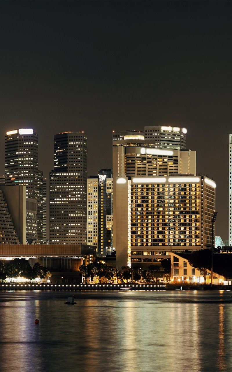 Назад к обои небо, ночь, город, огни, берег, здания, дома, небоскребы