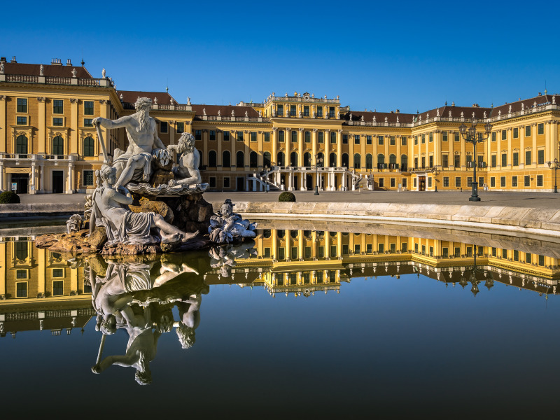 Назад к обои вода, отражение, Австрия, фонтан, скульптура, дворец, Austria, Вена