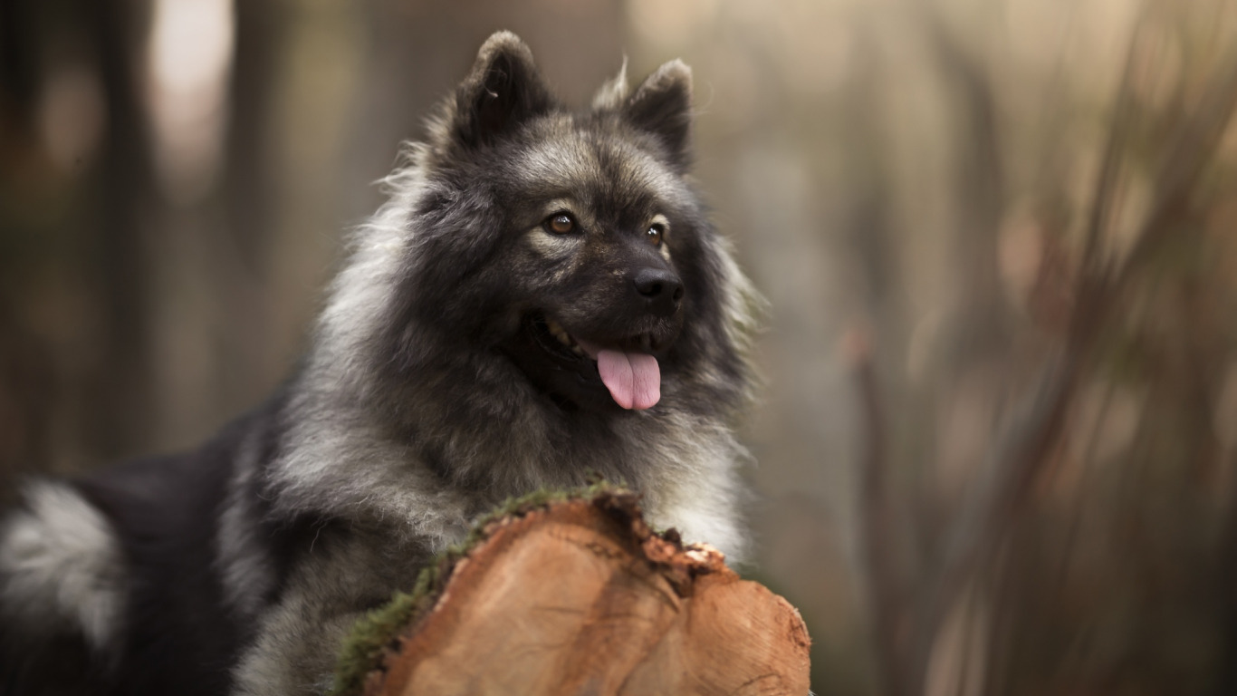 Назад к обои язык, взгляд, морда, портрет, собака, бревно, боке, Евразиер