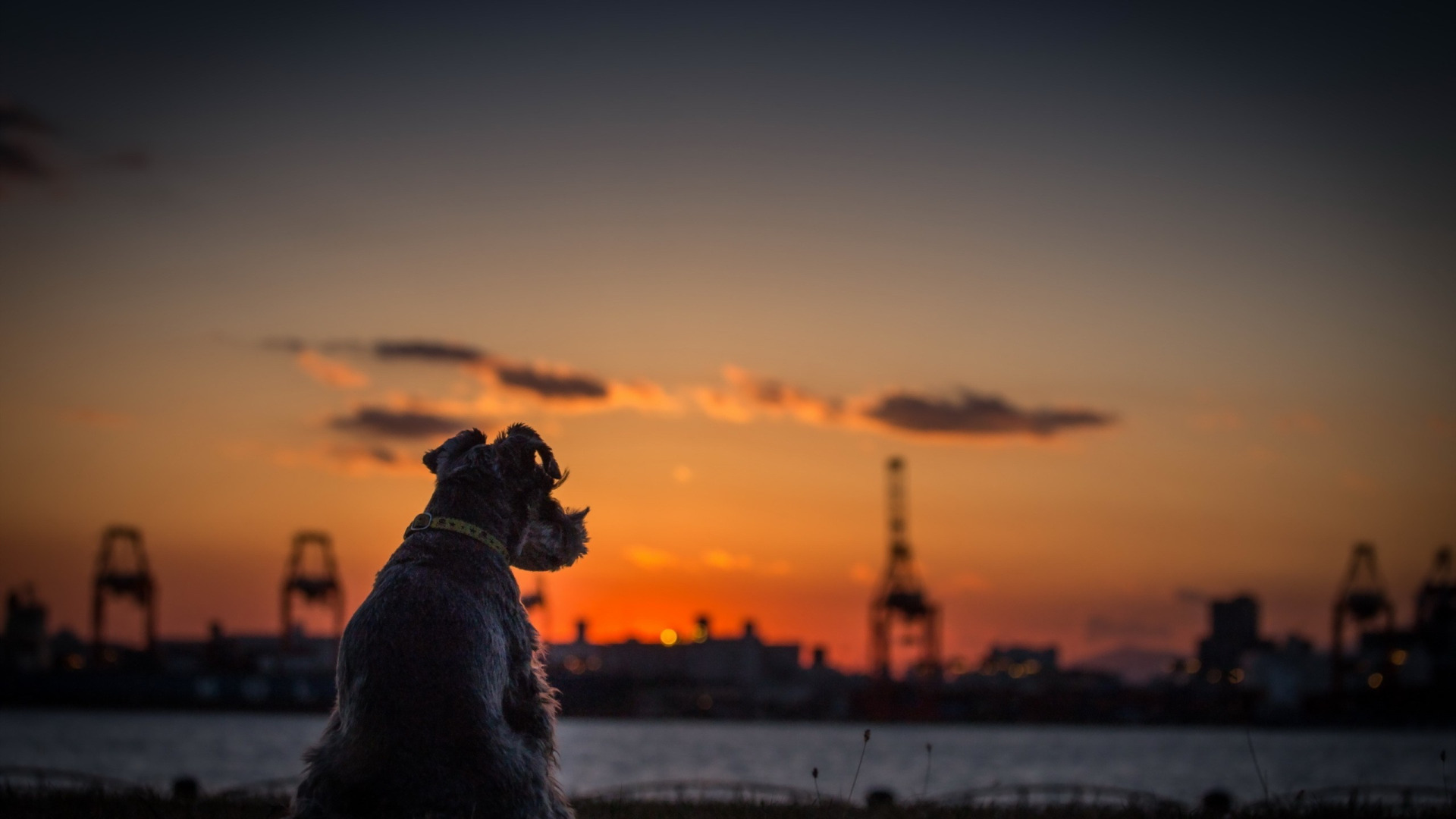 Назад к обои закат, собака, горизонт, терьер