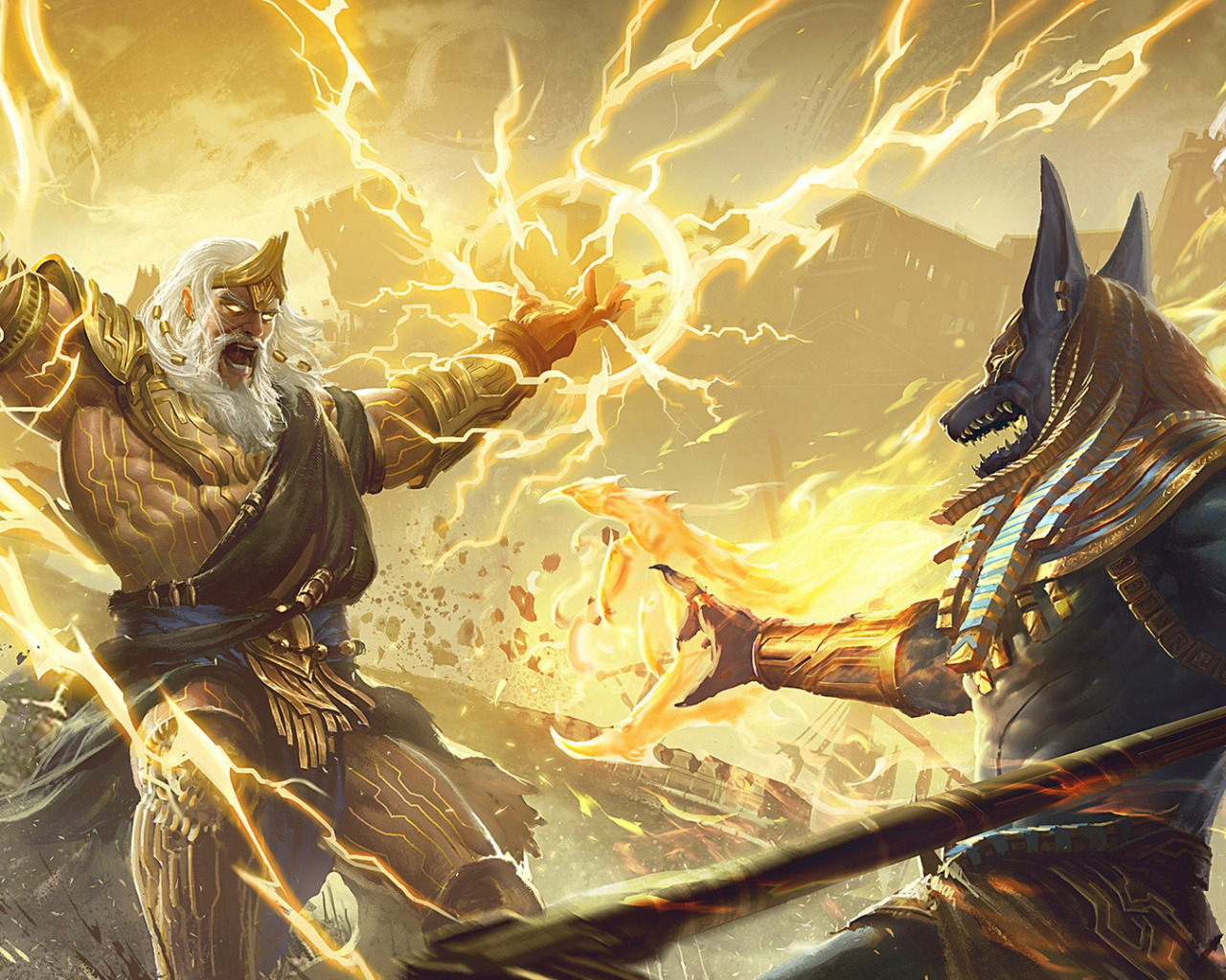 Назад к обои бог, битва, Gods, fight, зевс, Zeus, Anubis, Анубис
