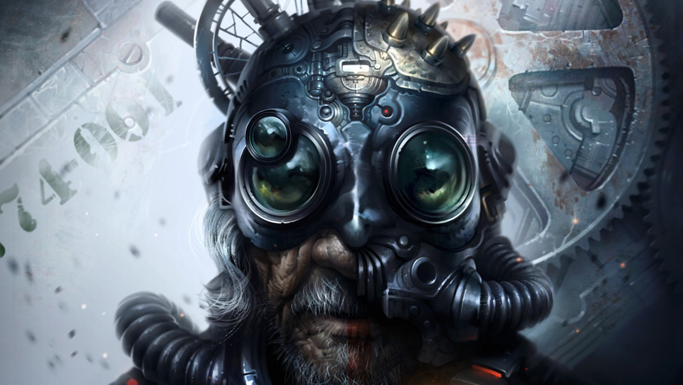 Назад к обои фантастика, дед, шлем, дедушка, борода, киберпанк, art