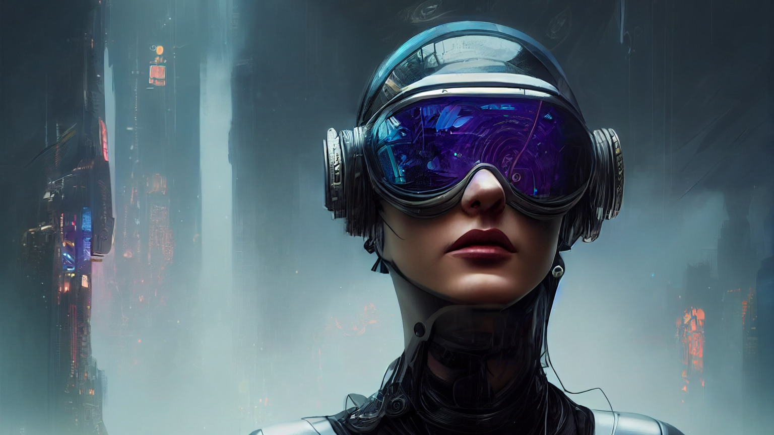 Назад к обои девушка, очки, киберпанк, андроид