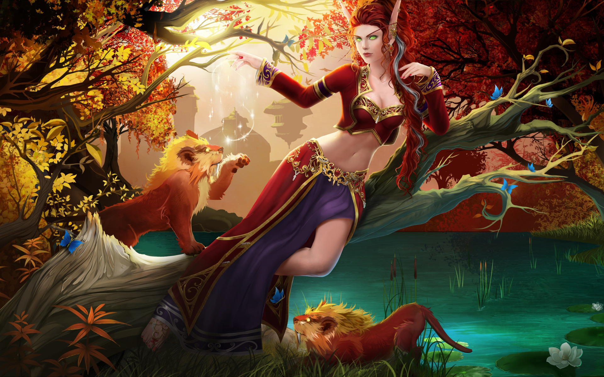 Назад к обои девушка, животное, арт