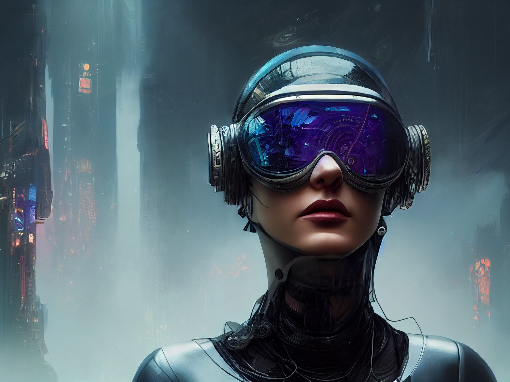Назад к обои девушка, очки, киберпанк, андроид