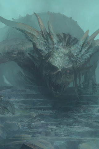 Назад к обои огни, спина, монстр, фэнтези, лесница, плащ