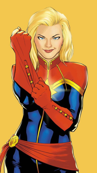 Назад к обои взгляд, фон, блондинка, костюм, Marvel Comics, MS Marvel