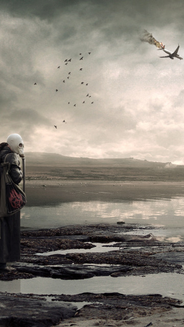 Назад к обои город, птица, апокалипсис, болото, мужик, самолёт, пустош, Грач