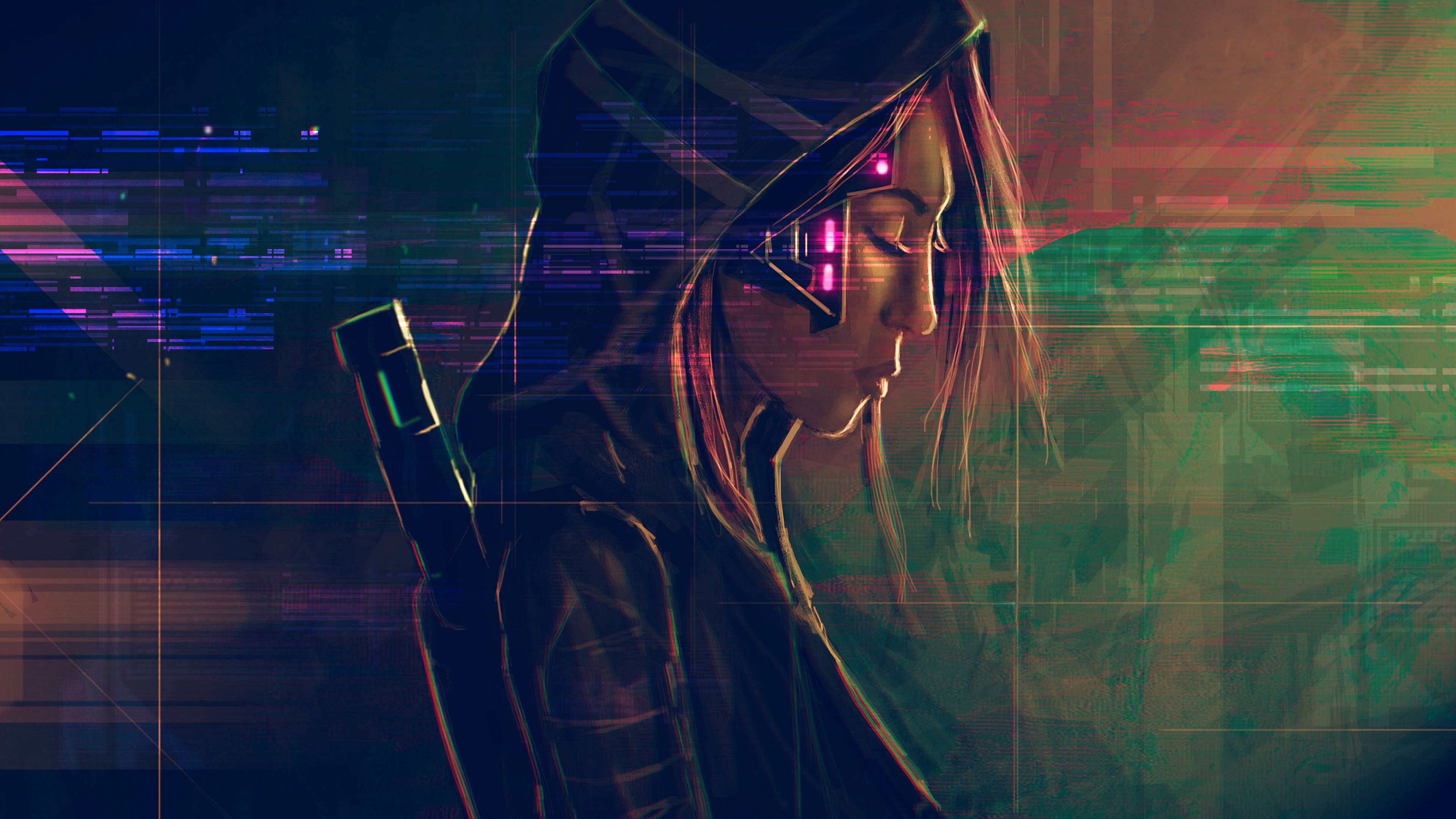Назад к обои девушка, лицо, капюшон, art