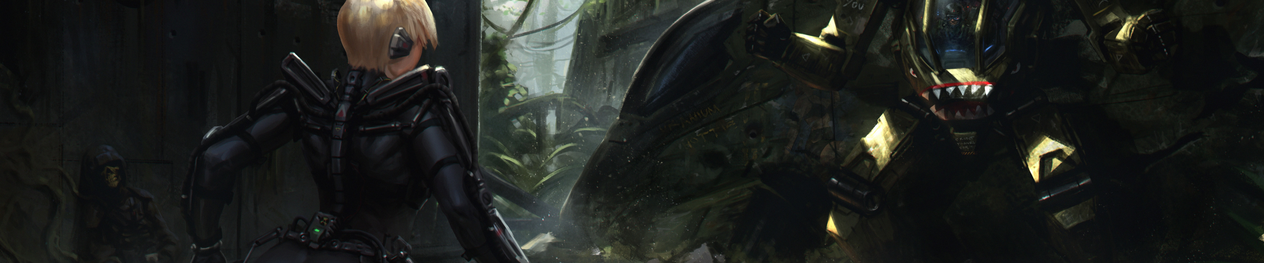 Назад к обои попа, девушка, фантастика, робот, джунгли, арт, блондинка, танк