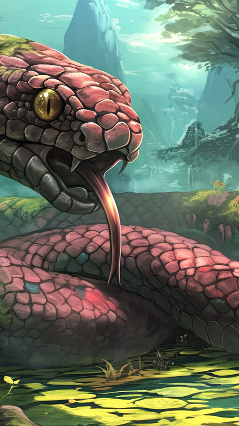 Назад к обои язык, морда, деревья, горы, животное, змея, клыки, маг