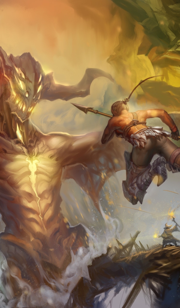 Назад к обои оружие, человек, крылья, монстр, лук, арт, рога, копье