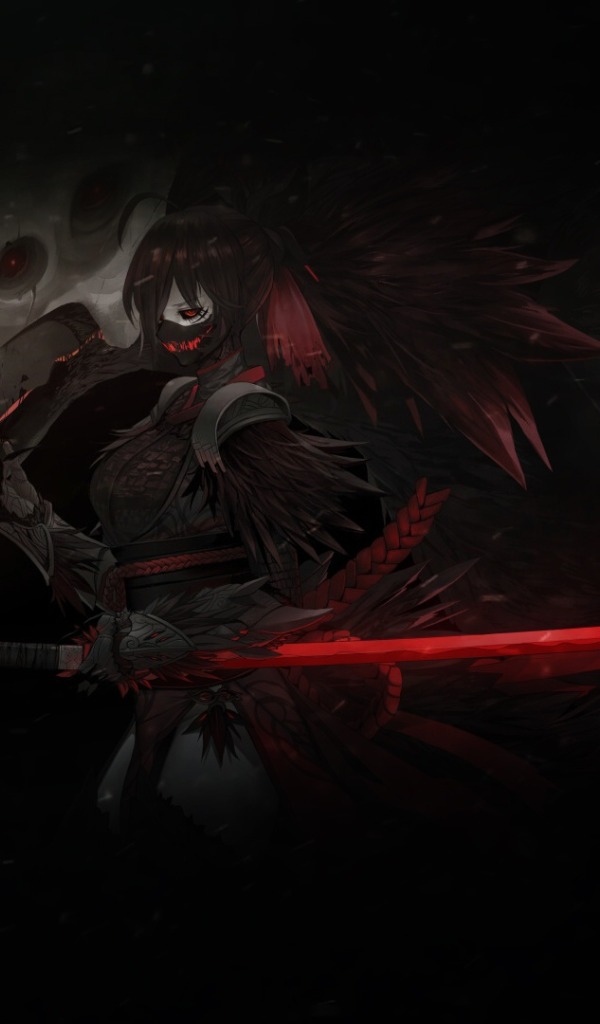 Назад к обои девушка, смерть, фантастика, тьма, птица, череп, меч, катана