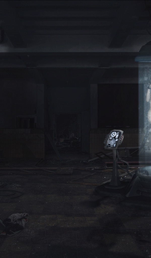 Назад к обои девушка, интерьер, капсула, пульт, пробирки