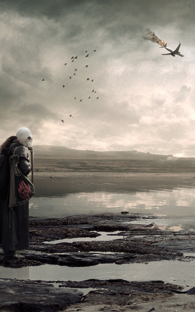 Назад к обои город, птица, апокалипсис, болото, мужик, самолёт, пустош, Грач