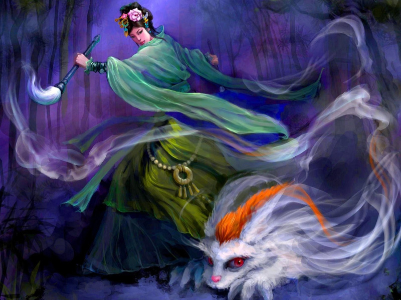 Назад к обои лес, девушка, ночь, магия, колдунья