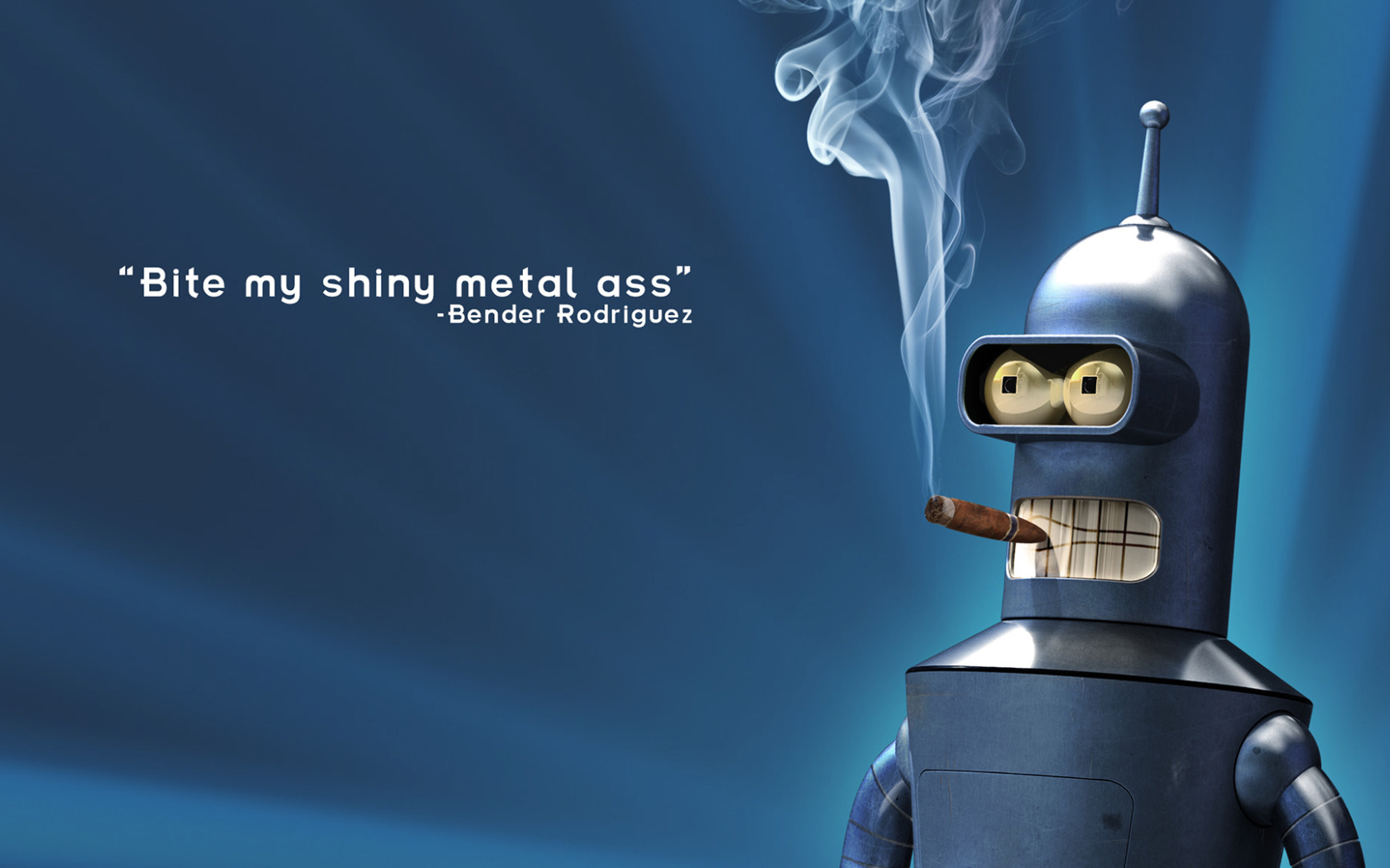 Назад к обои дым, сигара, Бендер, Rodriguez, Bender, my shiny, bite, metal ass