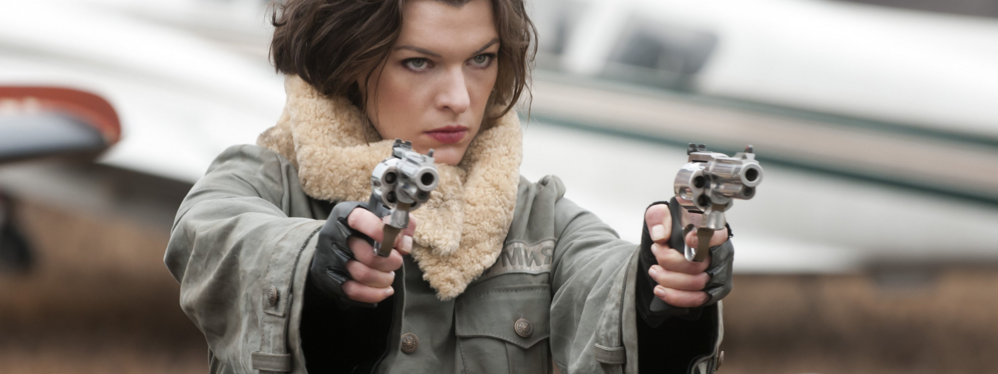 взгляд, поза, оружие, Милла Йовович, Milla Jovovich, элис, Resident Evil Afterlife, Обитель зла 4: Жизнь после смерти