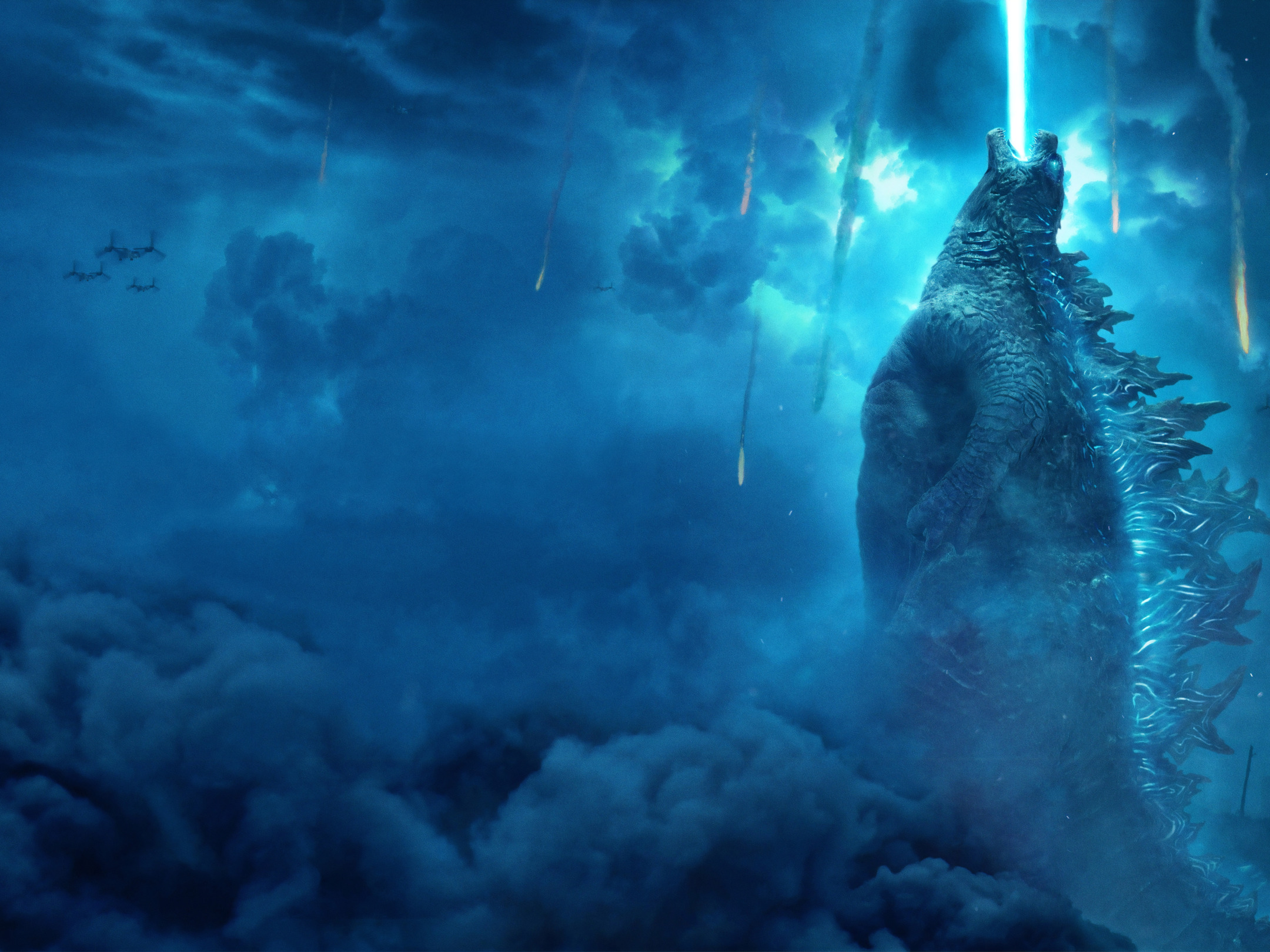 Назад к обои fire, Action, fantasy, rain, monster, Lightning, blue, clouds