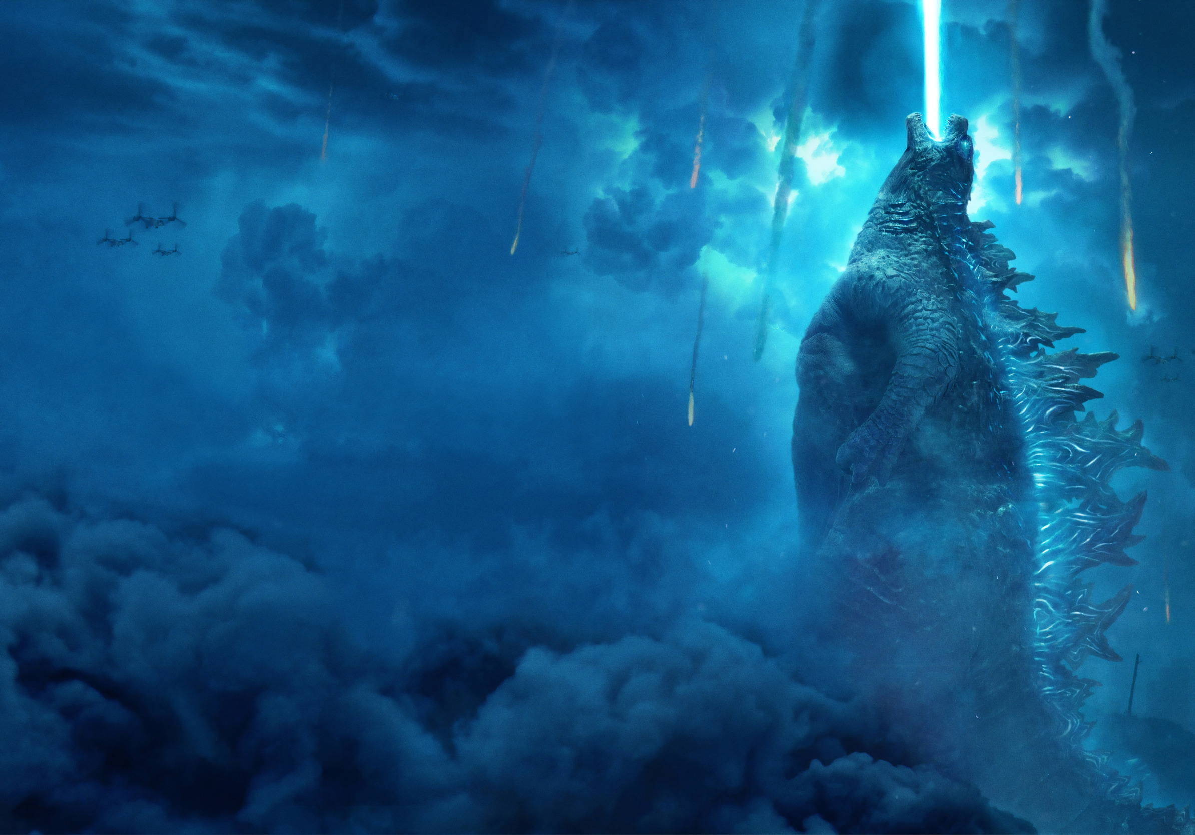 Назад к обои fire, Action, fantasy, rain, monster, Lightning, blue, clouds