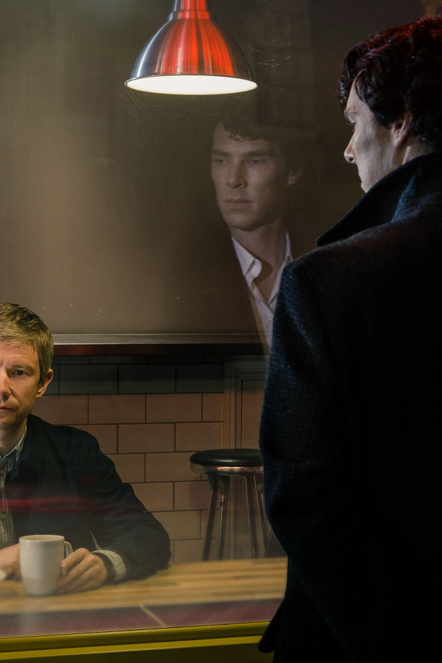 Назад к обои отражение, окно, чашка, кафе, Шерлок Холмс, Мартин Фриман, Бенедикт Камбербэтч, Benedict Cumberbatch