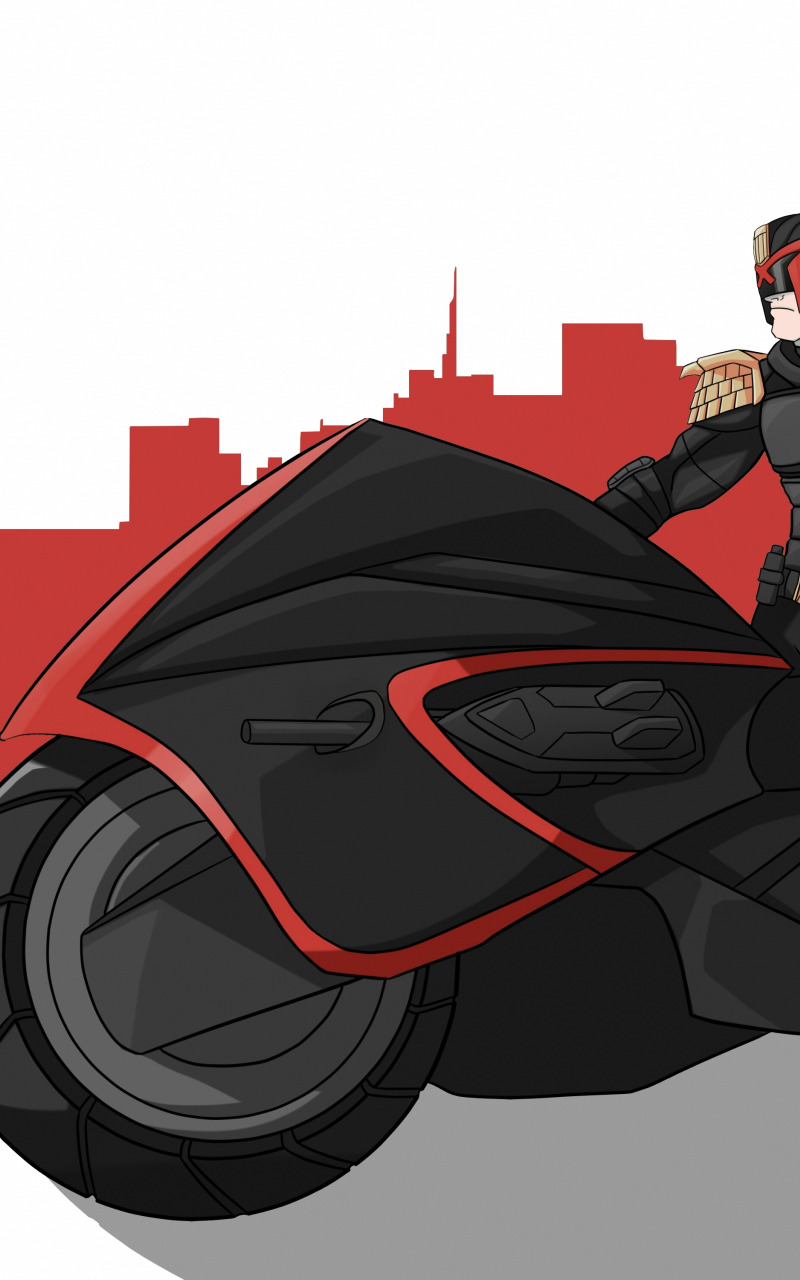 Назад к обои пистолет, фантастика, арт, мотоцикл, шлем, байк, Судья Дредд, Judge Dredd